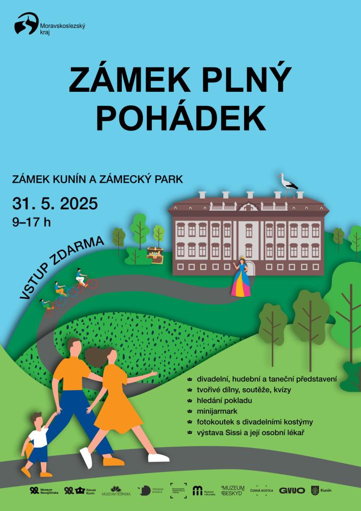 V předvečer Mezinárodního dne dětí se zámek Kunín promění ve svět pohádkových bytostí, příběhů, her, soutěží a čtenářských dílen pro rodiny s dětmi. Nebudou chybět ukázky tradičních řemesel, kostýmované prohlídky, hudební, taneční a divadelní vystoupení. Zámecké interiéry přivítají návštěvníky výstavou „Sissi a její osobní lékař“.